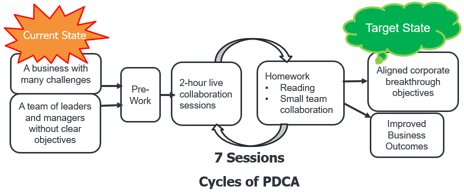 - Identify the conditions necessary for successful execution of Hoshin Kanri planning and alignment in an organization – Learners will list and evaluate the critical factors that contribute to effective Hoshin Kanri planning and organizational alignment.